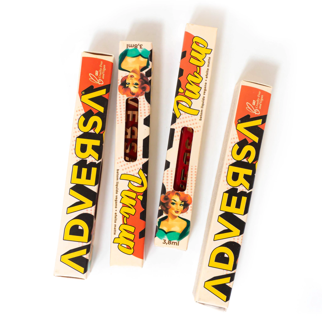 Aumente suas vendas com nosso BOX Display do Batom Líquido Matte Vegano da Coleção #Pin-Up da Adversa Makeup, no box você leva 3 cores de batom com um provador Ful Size.